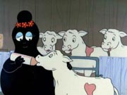 Mentre Barbamamma offre il latte ai vitelli, i suoi barbabebè si tramutano in vitellini per assaggiare lo stesso latte, ma lo scherzo dura molto poco.