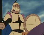 Il fratello del comandante delle guardie di re Lavic è arrivato alla corte del re per vendicare la morte del comandante. Così opposto al Cavaliere dal cavallo bianco, mostra tutte le sue abilità di combattente, ma non ha scampo contro la potenza della spada sacra.
